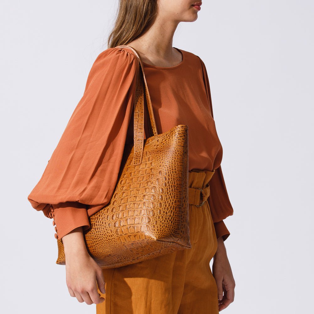 The Tote Kyke is a soft. unstructured croco-embossed leather bag. designed to be your perfect everyday companion. With an open top. this classic shopping-style tote is spacious enough to carry everything you need. from your laptop and sweater to all your daily essentials. Whether you’re heading to university. work. or a weekend outing. this versatile bag fits it all. Its interior is fully lined and includes one zippered pocket for added convenience. With no fixed compartments. you can organize it however you like. making it the ideal bag for a personalized touch—perfect for adding your initials. Available in three stunning colors: Ivory. Black. and Caramel. Practical. stylish. and ready for any occasion.
