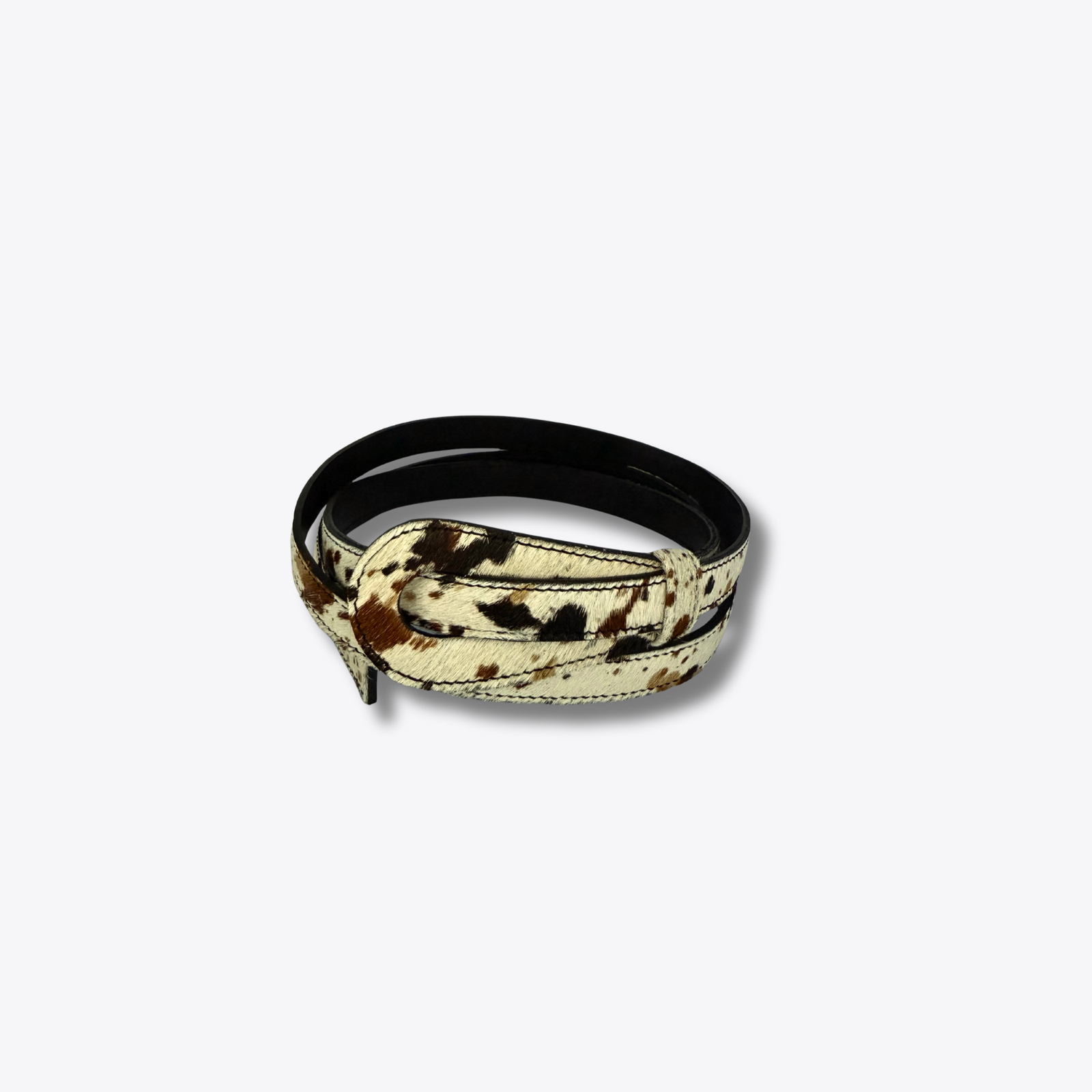 The Pampa Slim Bow Tie Belt is handcrafted in Argentina from buttery full-grain leather or tactile hair-on calfskin. Lightweight and versatile. its slim silhouette ties at the front and can be worn tucked or styled in a knot. A timeless piece designed to define the waist with effortless elegance. Available in four finishes: buttery full-grain leather or tactile hair-on calfskin.